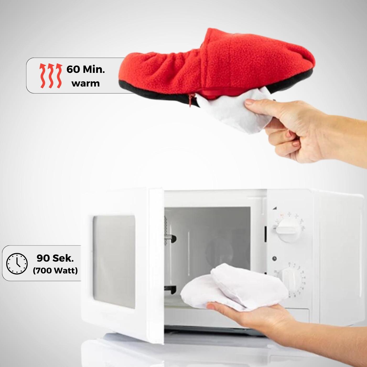 Unsere Fußwärmer sind kinderleicht in der Anwendung. Die Tonperlen-Säckchen für 90 Sekunden (bei 700 Watt) in die Mikrowelle legen, und schon genießt du 60 Minuten lang angenehme Wärme. Kein langes Warten, keine komplizierten Prozesse – pure Entspannung für deine Füße.