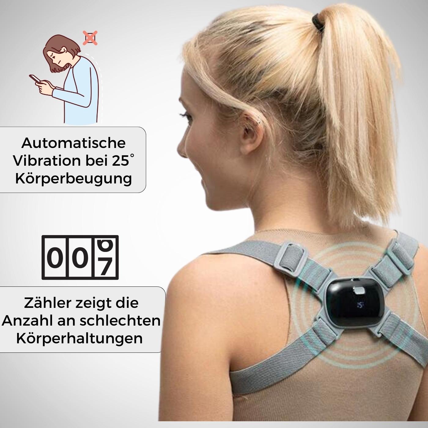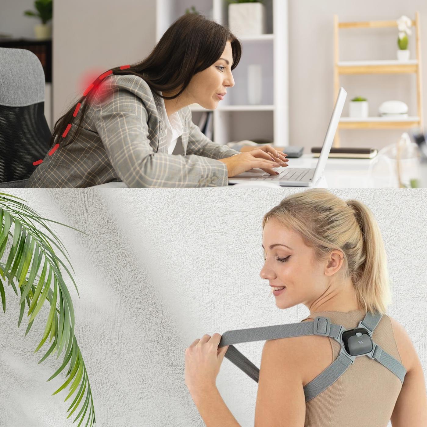 - Vibrationserinnerung bei schlechter Körperhaltung: Unser intelligenter Haltungstrainer gibt dir eine sanfte Erinnerung, wenn deine Körperhaltung nicht optimal ist.