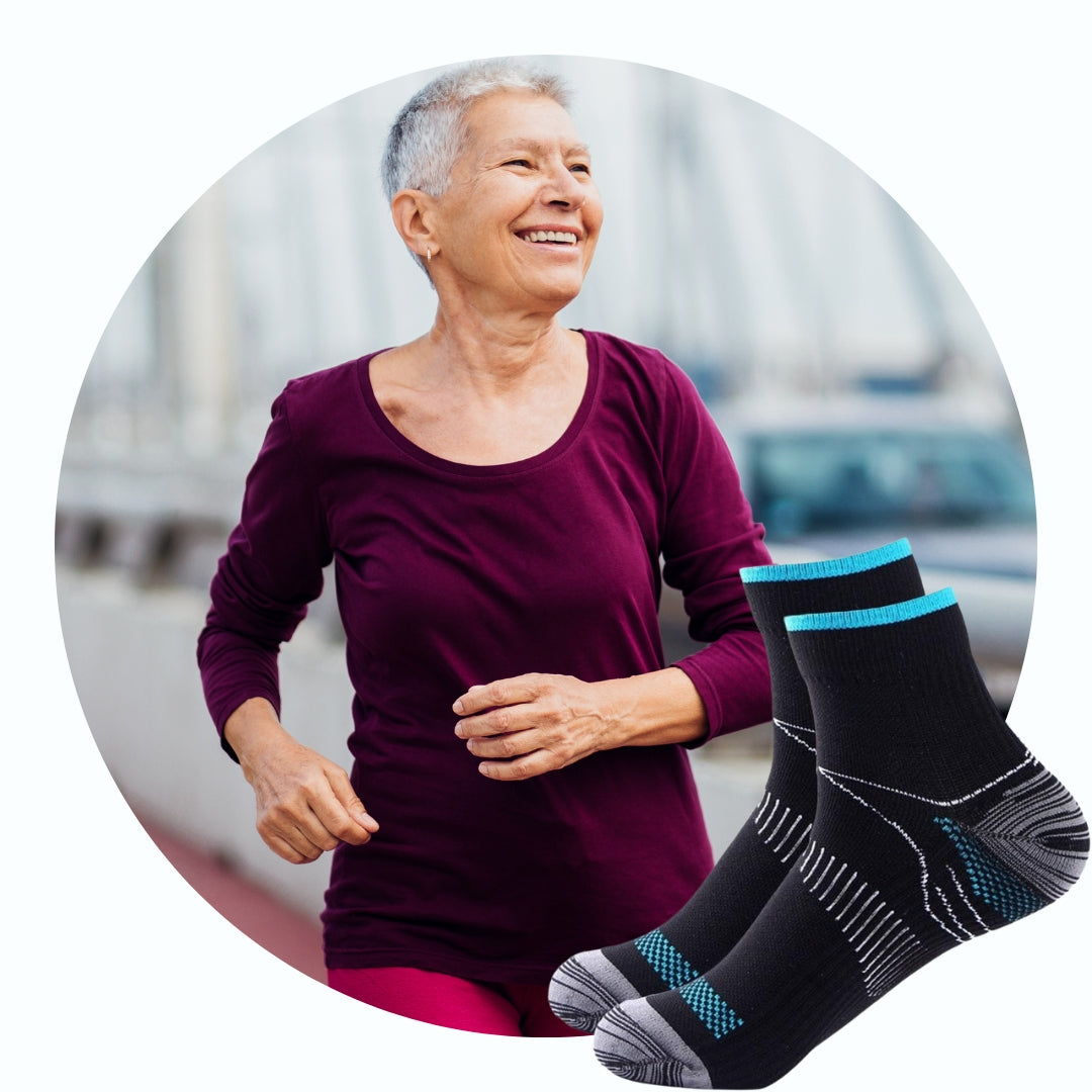 Über 40% der Bevölkerung in Deutschland leiden unter Fußschmerzen. Entdecke unsere Kompressionssocken, die dir sanfte Linderung und Unterstützung bieten.