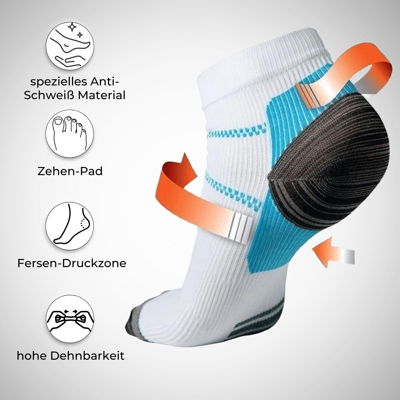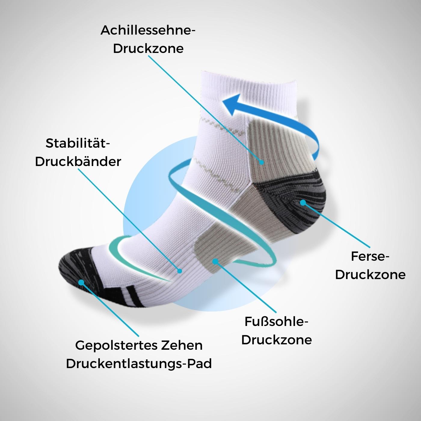 Entdecken Sie, warum unsere Kompressionssocken unübertroffene Leistung bieten. Unsere Socken sind mit fünf herausragenden Merkmalen ausgestattet: